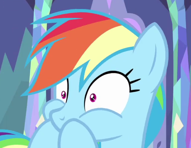 I felt like an overgrown baby. Perhaps it would have been better if Applejack had just torn me apart at her farm. If that weren't enough, those reddish-pink eyes of Rainbow’s bearing down on me...I could taste the fury in them.