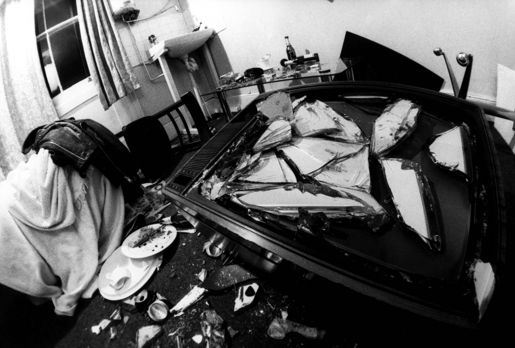 “Fuck!” Feather Bangs shouted, tossing the phone hard into the other room. “Fuck,” he whimpered, dropping to the linoleum and sobbing.