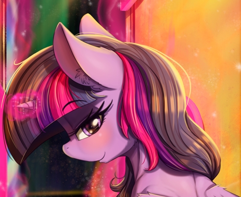 “Like a big sister you say?” Twilight said, raising an eyebrow and an eager curiosity. Swaying herself a little closer to the colt, she decided it was time to make her move. “You know, I wouldn’t mind being like a big sister to you too.”