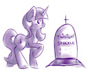 Then there were Maud's friends and co-workers from the School of Friendship, where she sometimes substitute taught, and students, and her acquaintances. And then there was me: Starlight Glimmer. Maud's best non-family-friend. I wasn't up front and I wasn't at her side. I was in the back, hiding from everypony. I slunk deeper into the shadows.