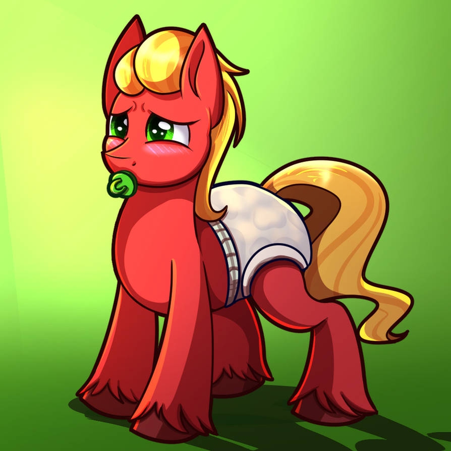 Chapters His eyes still watering and nose running, Sprout slowly made his way over to the changing table. He consciously avoided dawdling too much, not wanting to draw his mother's ire again immediately after the swift wrath that his flanks had just suffered, and were still tingling from. As he slowly ascended the small set of wooden steps in the corner of the table, taking one last look at the stacks of diapers on the shelves, he wondered how quickly his mom had put this together. Being the owner of the largest factory in town, it wouldn't surprise him if this furniture had been built in a day. His hooves touched the soft plastic padding, and he laid down on his stomach.
