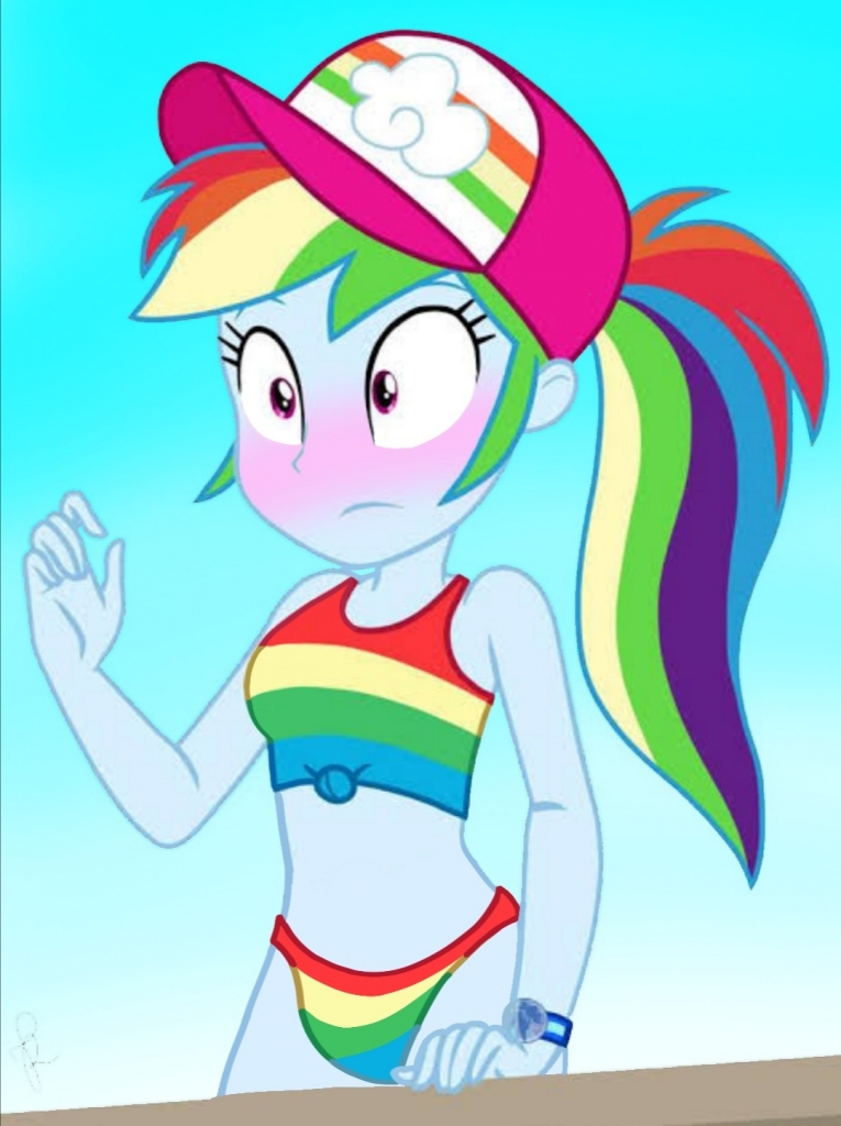 Eight beach blankets were arranged next to each other, Dash in the center. Pinkie, bottomless but wearing a yellow bikini top to control her huge boobs, dozed to Dash's right. Rarity, terrified of tan lines and slathered in nuclear flash-grade sunscreen, napped naked to Dash's left. Trixie, also naked except for cape and hat, read an LSAT review book on Rarity's other side.