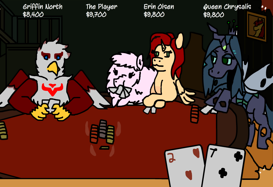 The final set of five was dispensed. Erin and Chrysalis raised their cards, and for the first time, Chrysalis' poker face dissolved into a challenging glare.