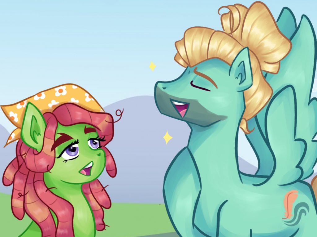 Discord does not particularly care for Fluttershy's friend, Tree Hugger. So when she comes over to have her monthly mane treatment session with her, Discord directs her to the one mane stylist that could possibly make her mane worse: Zephyr Breeze.