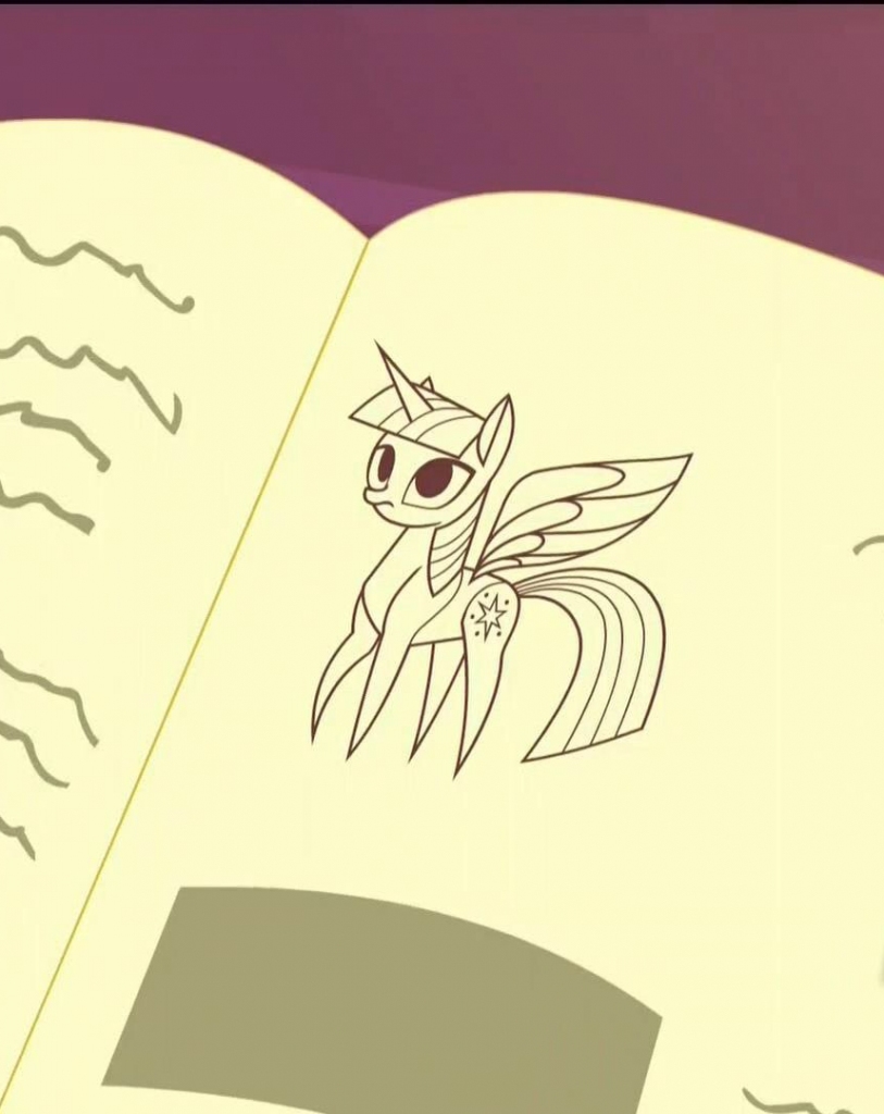 "Moondancer!" Twilight snapped. "What did you do?" Twilight looked at herself. She was a crudely drawn illustration, as was Moondancer.