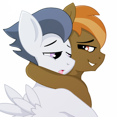 Rolling onto her back and shuffling beneath the pegasus, she peppered his delightfully flat chest with kisses - that was, until her lips graced one of his perky nipples. Suckling upon the delicate bud of flesh, hearing a whimper escape from him, she unabashedly reached between her legs and began rubbing her marehood. With the two young stallions enjoying themselves, she saw no reason why she couldn’t have a little bit of fun herself.