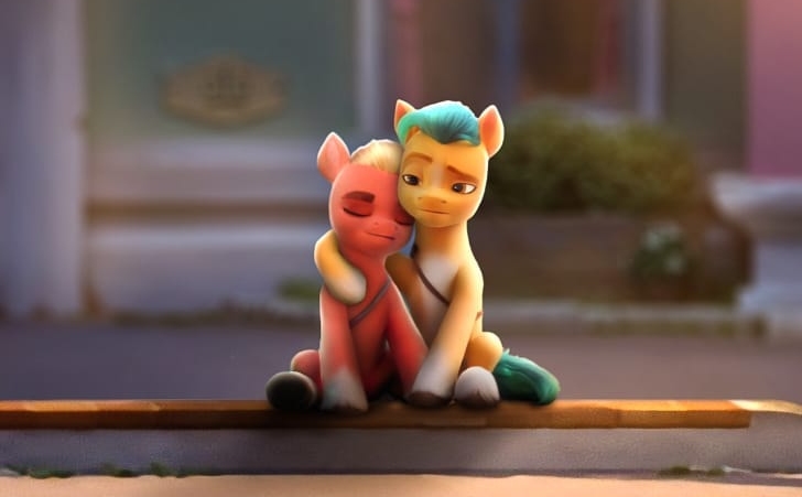Sprout playfully tried to get away from Hitch's hoof messing up his mane, before getting himself under control and snuggled into his chest.