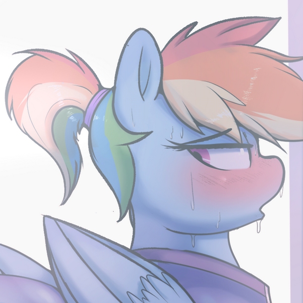 Lurching forward with each buck of his hips, slurping on Itch’s dick, Dash found herself virtually pinned between the two. She’d never been so brazen as to service two creatures at the same time, let alone somepony she’d just met, so the scandalous situation reaped a heavy toll on her lust-addled mind. Steadily constricting and relaxing her snatch, while she slavered on the dog cock in her maw, she did what she could to please the two of them.