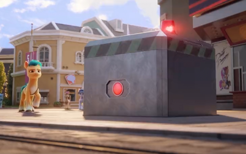 "Don't even think about it," the sheriff commanded, galloping forward to the front of the steel box, coming between Sunny Starscout and the release button. "We're going to find out who she is and what she's doing here."
