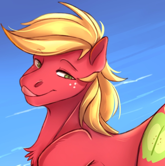 It was fair to say that he liked each of the ponies for their own reasons, yet there was one among them who he’d begun gravitating toward - Big Mac. Standing about a head taller than himself, despite being a quadruped, the well-built stallion was the definition of a gentle giant. Covered in carmine fur, with a golden mane and tail, he moved with a grace that belied his imposing size - nevertheless, there were but a single facet of the captivating titan. Aside from being an all but literal colossus, dwarfing most ponies with his stature and build, the crimson stud was quite enigmatic.