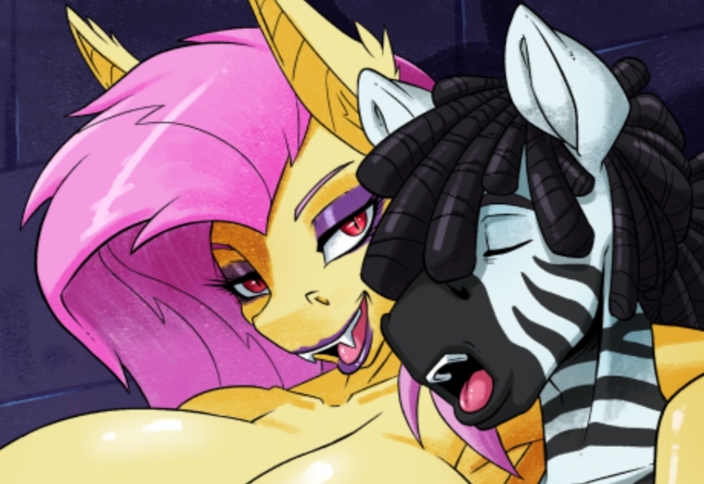 "I don't think you understand." Flutterbat stated, not only approaching the zebra as he tried to stand up, but was pressing her face close to his, and her massive tits were squishing against his own muscular frame. "You got a cock that can keep me company all night?" Zandre nervously nodded, never having dealt with a mare this forward before. "Good, so let's get to it stud." She reached down, groping at his bulge. "Cause I'm gonna milk that thing until you're cumming dust."