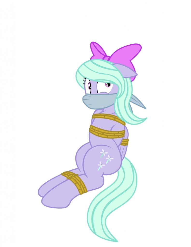 Flitter struggled against the bonds, her breath hot and stale against the cloth gag that covered her nose and mouth. She jerked and thrashed, but Soarin held her down, forehooves on shoulder blades, mashing Flitter into the bed, so that Cloudchaser could tie the bow into her mane.