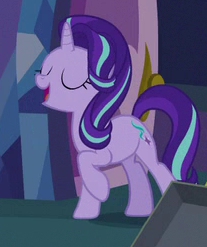 With her shirt-admiring over, Starlight hopped out of her room and bounced down the castle’s crystal hallways. Pinkie Pie would be proud.
