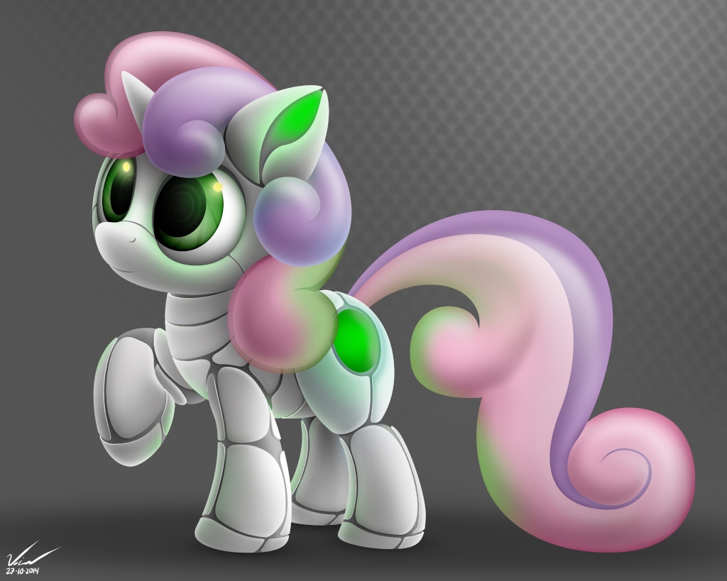 "Sweetie Bot!" Rarity stomped, then stomped again. "Sweetie. Bot. How. Old. Are. You?"