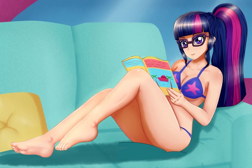 Twilight Sparkle, age 19. One of 7 members of a popular band called the Rainbooms. She's got a high IQ and has proven time and again her booksmarts is the result of her hard work. Of course, sometimes, she can go a little overboard with her studies and skip out on a few meals. And she'll be so absorbed into her reading, that she'll unknowingly build herself a few book forts. Such an adorkable girl like her is rare to come by and she's grown into very fine young lady... in more ways than one, too.