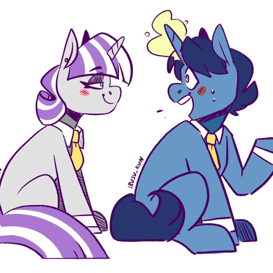 “Looks like you’re having fun. You gotta - uh…” Night trailed off, as his hooves wandered to his crotch. Seeing his paramour amateurishly flop her cock around was entertaining and all, although his curiosity about his own newfound anatomy quickly took precedence.