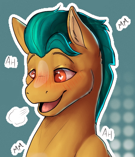 "What?" Hitch looked down at his dick and saw his lubed-up hoof working himself. He was so lost in lust that he hadn't noticed. "Oh. Right." He pulled his hoof away. "Should I…"