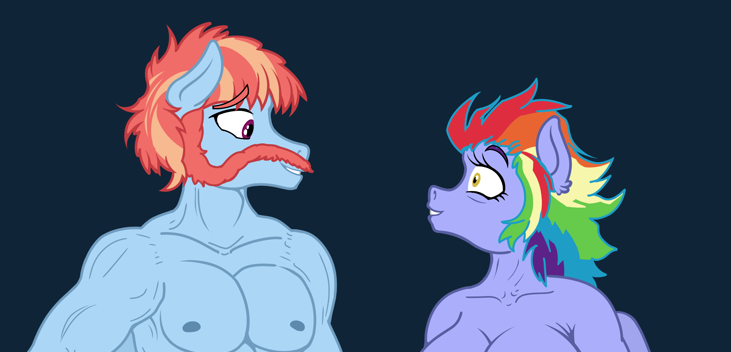 “Bow, look at you.” Windy commented, pointing to her husband’s body. “Firm, taut muscles that can lift heavy storm clouds. A flat, ripped belly that could break lightning on. And a cock that could easily impregnate any fertile mare around.” Before Bow could say anything else, she continued. “But you wouldn’t be the one who would have to actually carry the foal. Rubbing her belly she looked at him. “After Rainbow, which felt like a bolt of lighting was coming out of me, I’m not going through that again.”