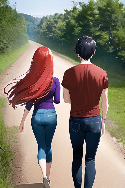 She turned to the tall woman who is much taller than her two friends, standing at 6'7" with long red hair with a yellow stripe and green eyes. She wore a loose pair blue pants with a checkered light blue pattern, a tuck in purple shirt with green stripes, a red tie with white polka dots, a pair of black suspenders, and a pair of brown leather shoes. She carried two large shoulder bags on both shoulders. What really got her attention is the figure of the tall redhead woman, a well toned body and her huge chest, that's being only held in check by her purple shirt. Making her wonder what she looks like naked, causing her to turn red as her mind went hentai mode.