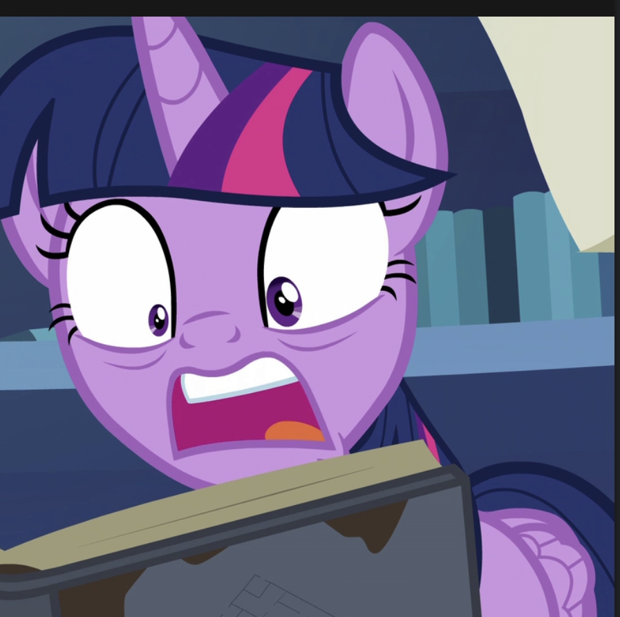 “ ‘Mr SW’?! Curiouser and curiouser… Twilight pondered internally, as the young stallion did his best to discreetly hide whatever unknown publication he’d picked out from the depths whilst making a swift exit. Well, as long as he brings it back in time and doesn’t pop any zits over it, I guess it doesn’t matter… hang on, we have another avid reader about to enter! We really are on fire today… or, perhaps I ought to rephrase that. After all, I don’t wait to jinx a major blaze in here with all these books scattered about…