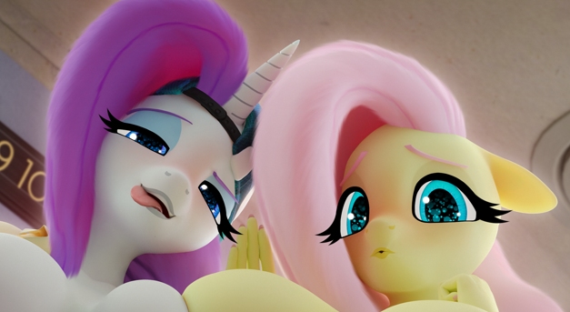 “Oh, Twilight, you’re here.” Fluttershy replied nervously, seeing as the mare was smirking at them both. “W-we just got your text.”