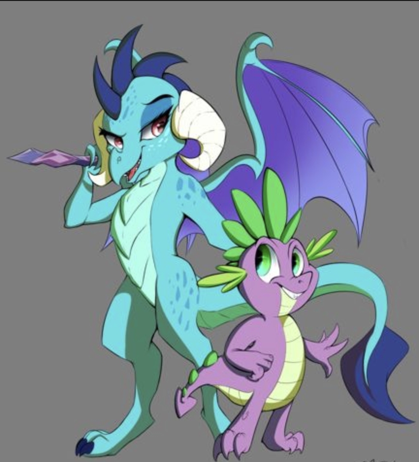 “My, you’re such a big boy now.” Ember commented seductively, as Spike grasped her up without protest in one huge talon while grabbing the valuable bag of comic books with the other. “And I don’t just mean your height…!”