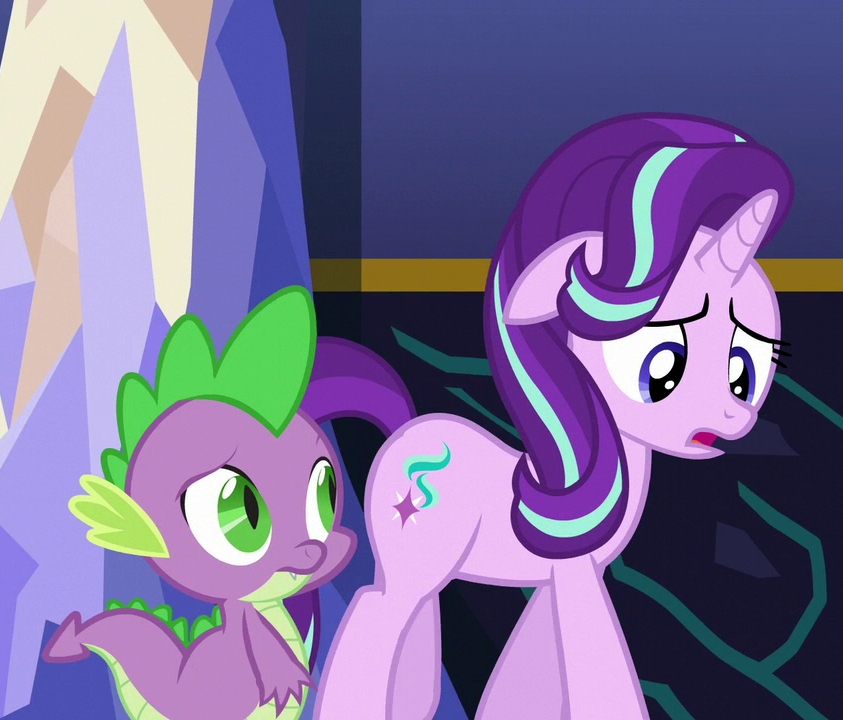 “What?!” Spike exclaimed with his pupils agape. His claw still resting on Starlight’s hooves, he added, “Of course you do!”