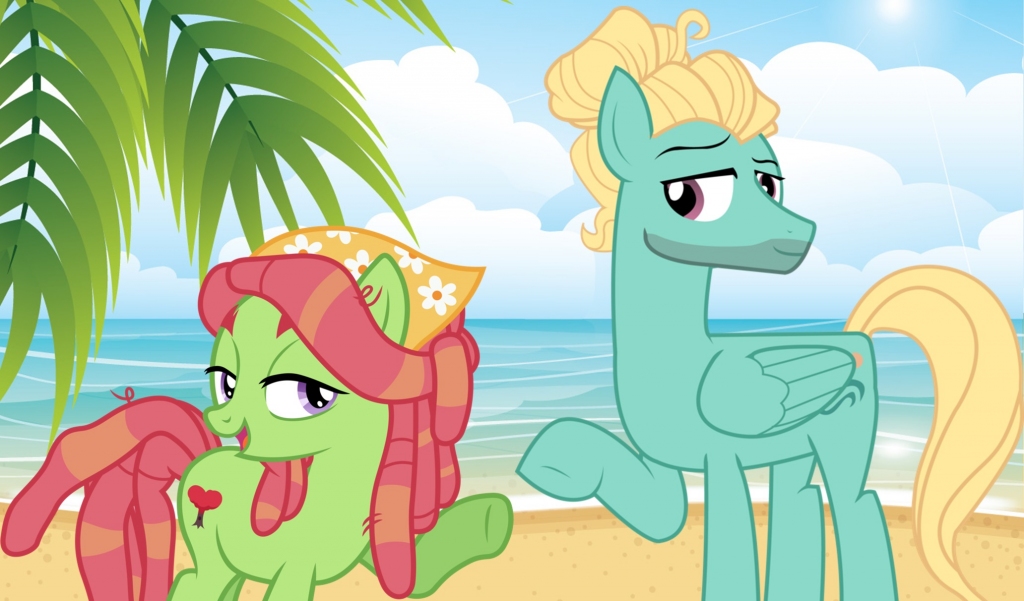 He swam back to shore where the board had embedded itself into the sand. He picked it up and carried it back to the beach blanket. Discord sipped his Piña Colada and lowered his sunglasses to look at Zephyr coughing up seawater. "Discord! Can you teach me how to surf?" Zephyr asked. "I want to impress Rainbow!"