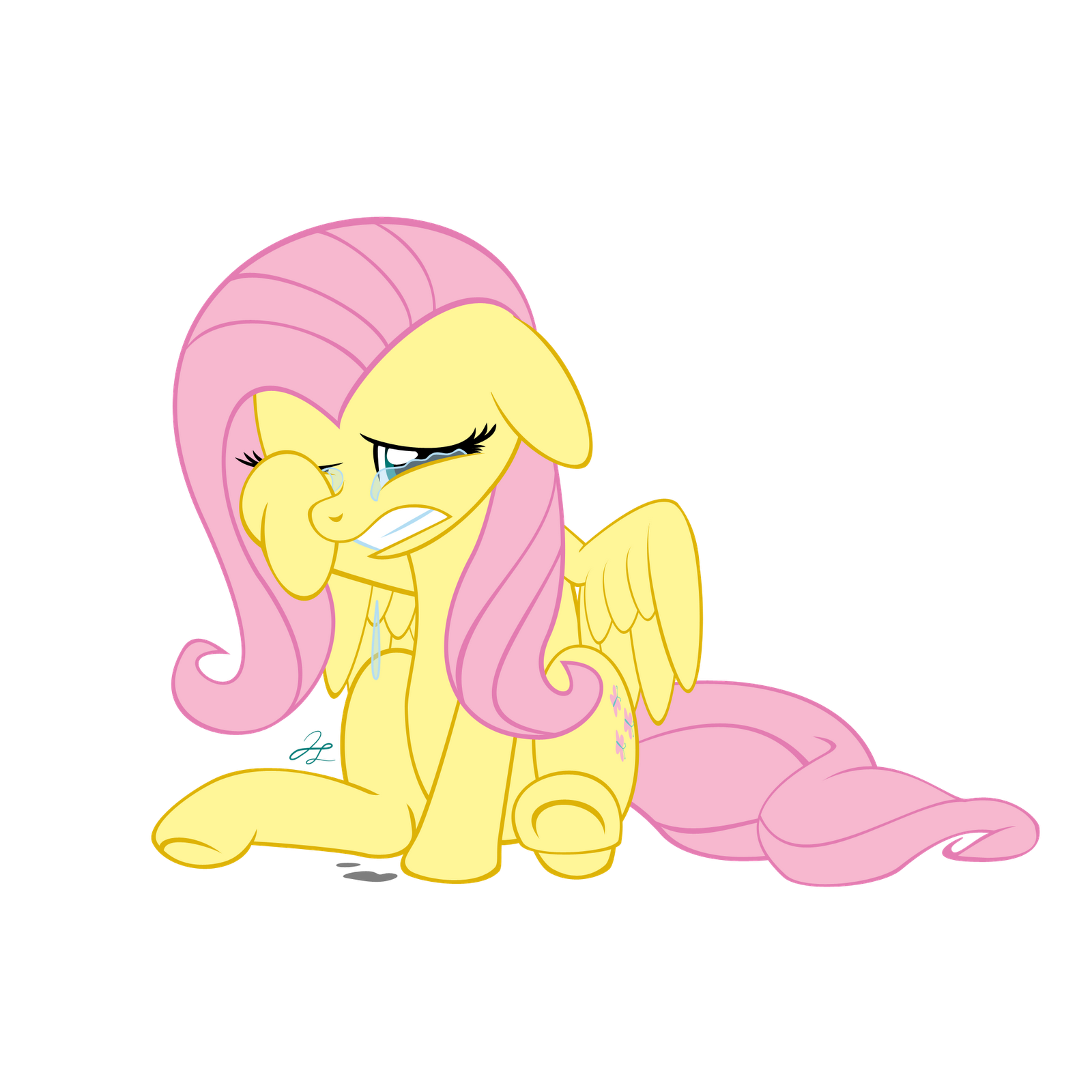 Fluttershy just laid still on the wooden floor. What felt like a century of pain and shame was now a burnt in memory. She didn’t move, but all she could do was cry. The two ponies stood over her ruined body looking down at her with a sick notion of accomplishment. The Pegasus finally spoke up.