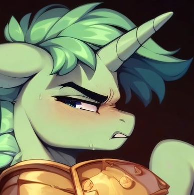 Looking at his hands, or rather, what were actually hooves. Anon started flailing about, screaming and neighing out as he was no longer a human, but a pony, or rather, a colt. He was a light green unicorn colt, with a darker green mane and tail. In his panicked state, his horn sparked and blasted wildly out in all directions. What had happened to him? Where was he? How could this happen? But when the initial panic swept through him, he tried to calm himself, looking at himself over and over again. This was still so strange, and he was almost panting, borderline hyperventilating as he was working through the changes that have afflicted him.