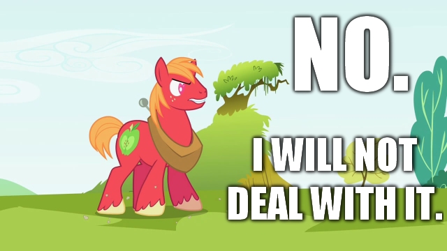 You bounce over to his side, caressing his back and brushing your head against his neck. You try to put on a soothing tone of voice. "Mac, look, there's nothing wrong with you! You're made for ponies!