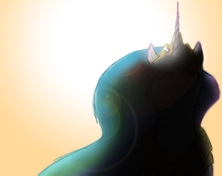 This darkness did not please her, so there must be light. The darkness belonged to somepony who was not her. But the place could be hers, with just a little bit of light; a light which she had, and must take to spread upon everything below her.