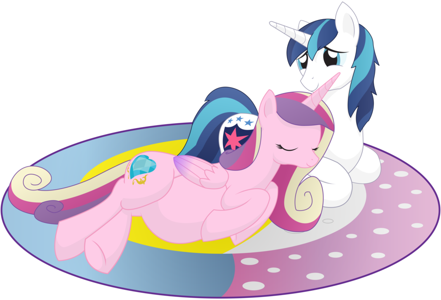 “And I love you, Captain Shining Armor,” Cadance replied. She cuddled against his body and closed her eyes. Shining continued to stroke her distended belly while her breathing slowed down; soon, she was asleep, her hoof wrapped around him and her head resting on his shoulder. He gave her a soft kiss on the end of her horn, and she twitched a little but stayed asleep. Shining's own eyes soon shut, and the exhaustion from the night's efforts quickly overtook him. Held securely in each other's hooves, the two ponies slipped into a deep, restful slumber, each one dreaming of the other and the promise of the new foal who would soon join their family.