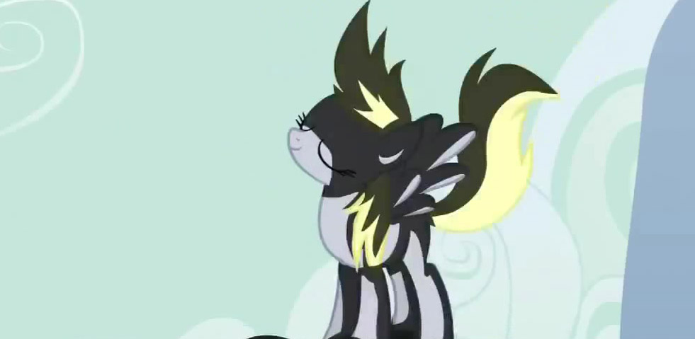 She tensed. Something wasn’t right. A tingle filled her wings and she tossed her head about, searching for the source of her superstition. “It’s nothing, Ditzy,” she reassured herself. “Just get to the destination.” It had been a long flight, but she was almost there now. The city of Canterlot was below, and the particular building she was looking for could be seen just a ways through the mist, it’s gold roof gleaming.