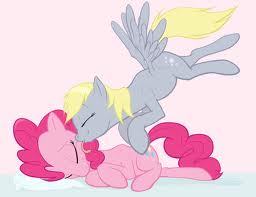 Before Ditzy could look back she saw the pink mare give her a big grin. As Pinkie jumped at the gray mare, pinning her back against the wooden floor board, Derpy felt her cheeks blush as the pink mare gave her a rather seductive look.
