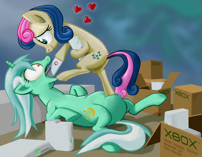 Bon Bon jammed her hoof against her moist vagina. “Lyra, you have no idea how much of a turn on I find your gobbling of these Xboxes to be...”