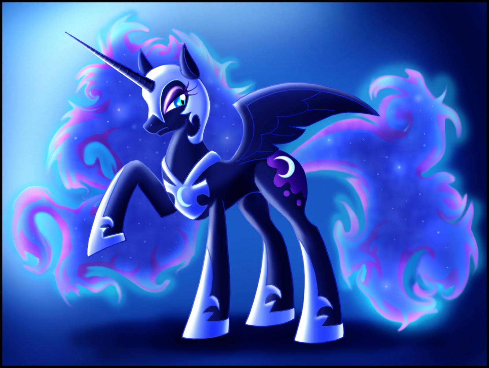 "It reminds me of..." Moon said, and then she tapped her face. She clearly seemed to be trying to remember something long past-- something from a while before her thousand year banishment. "A-ha, one of these comical 'hard rock' showponies. The Canterlot set used to love him."