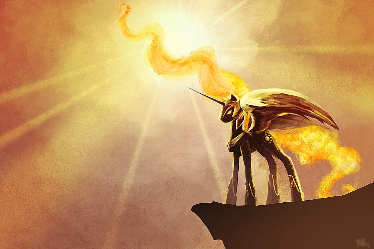 “Well, since Luna is the one responsible for raising the moon, it only makes sense that you dislike and distrust the night also. As a result, I’ve detained my sister and I shall give you what you preferred from the very beginning: Eternal sunlight.” My mane increased in heat intensity for a moment and the noble was forced to cover his face with a hoof.