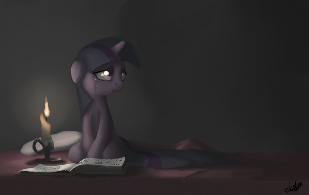 “She said it herself, Twilight. I’m more powerful than anypony you’ve faced before. How do you think that’s possible? I know everything you know, true; but your knowledge alone makes you little more than a great unicorn, certainly not a threat to Equestria. Your teachings alone couldn’t possibly make you what I am, so the only conclusion is that I know more from the teachings she denies having taught me.” I was slowly becoming convinced of his side of the story, but my heart wouldn’t allow me to lose faith in my teacher, our teacher.