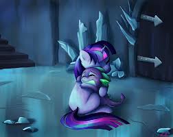 Spike nodded and hugged Twilight firmly, absentmindedly stroking her mane.